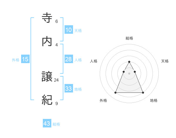 寺内 譲紀さんの総格は43画の2点!