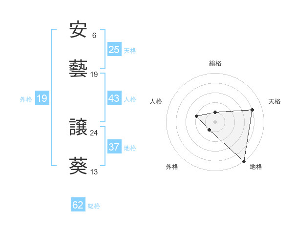 安藝 譲葵さんを姓名の画数から五運を鑑定