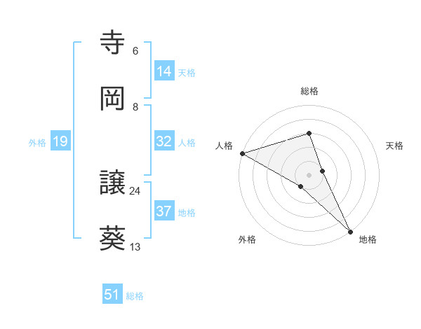 寺岡 譲葵さんの総格は51画の3点!