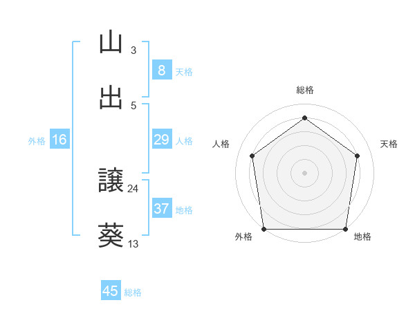 山出 譲葵さんを姓名の画数から五運を鑑定