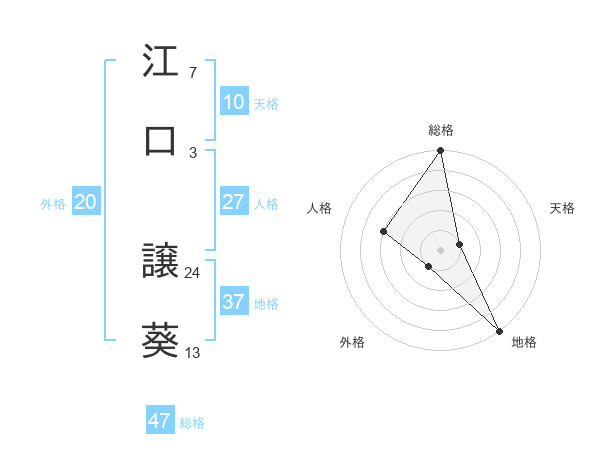 江口 譲葵さんの総格は47画の5点!