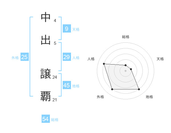 中出 譲覇さんの地格は45画の4点!