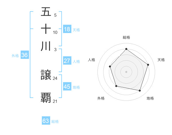 五十川 譲覇さんを姓名の画数から五運を鑑定