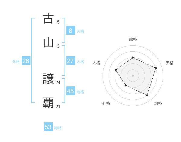 古山 譲覇さんを姓名の画数から五運を鑑定
