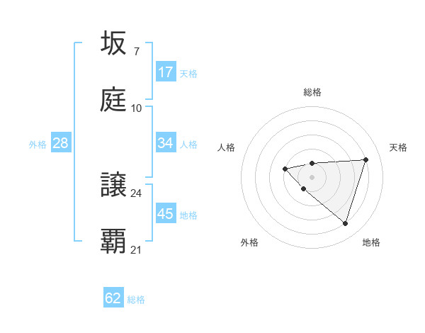 坂庭 譲覇さんを姓名の画数から五運を鑑定