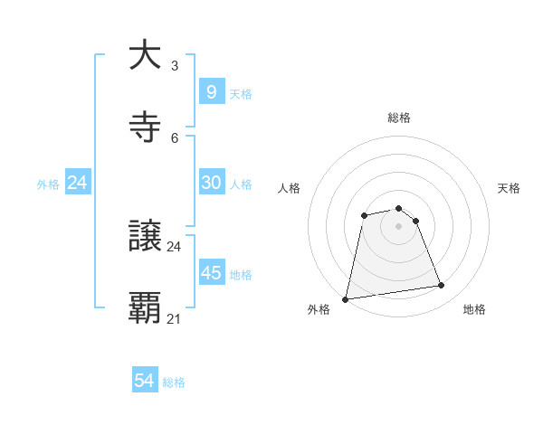 大寺 譲覇さんを姓名の画数から五運を鑑定