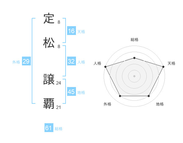 定松 譲覇さんを姓名の画数から五運を鑑定