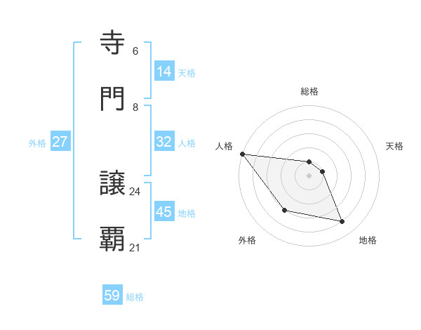 寺門 譲覇さんの総格は59画の1点!
