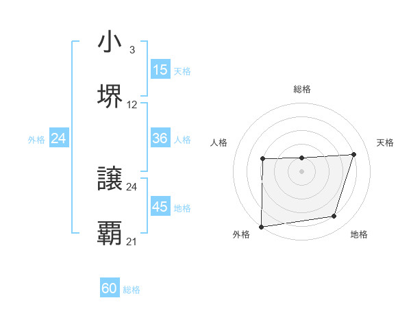 小堺 譲覇さんの総格は60画の1点!