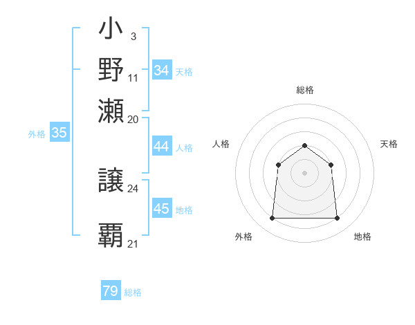 小野瀬 譲覇さんを姓名の画数から五運を鑑定