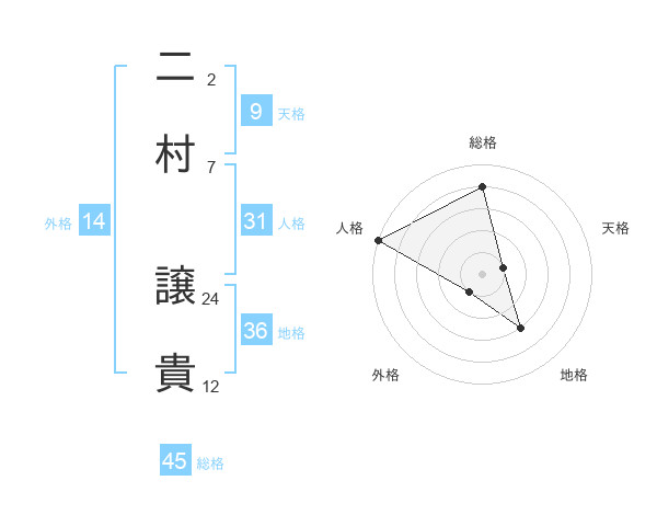 二村 譲貴さんを姓名の画数から五運を鑑定