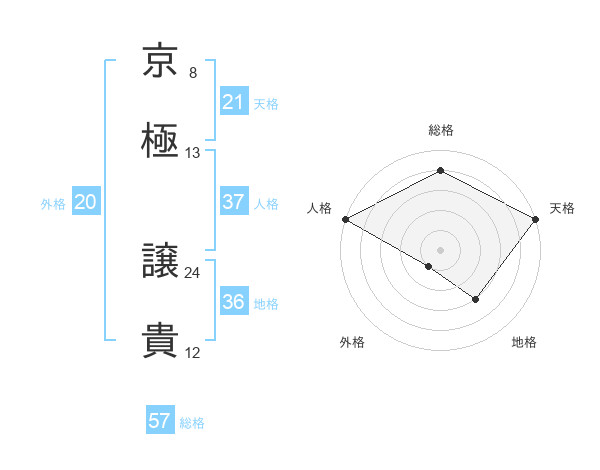 京極 譲貴さんを姓名の画数から五運を鑑定