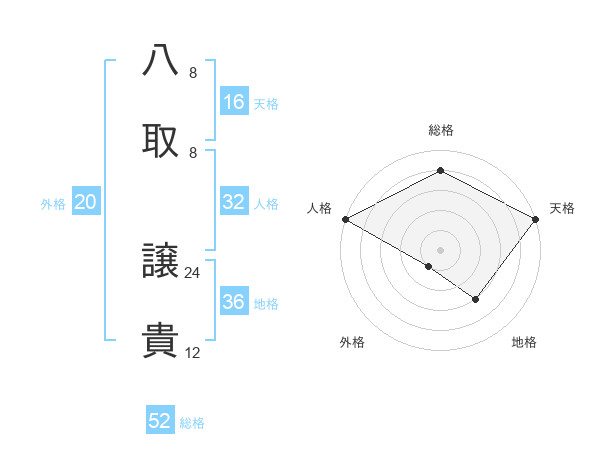 八取 譲貴さんの総格は52画の4点!