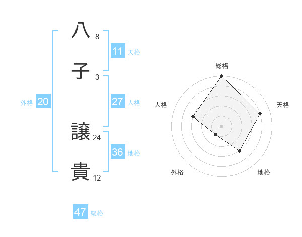 八子 譲貴さんの総格は47画の5点!