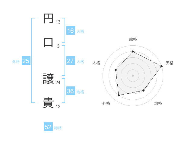 円口 譲貴さんの総格は52画の4点!