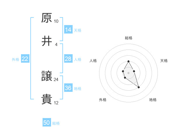 原井 譲貴さんの総格は50画の2点!