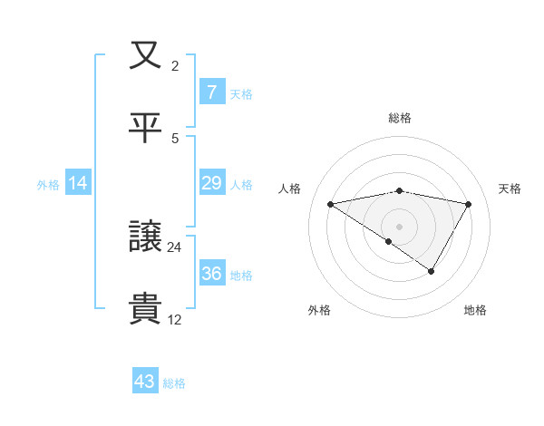 又平 譲貴さんを姓名の画数から五運を鑑定