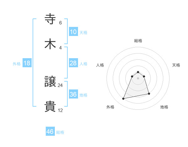寺木 譲貴さんを姓名の画数から五運を鑑定
