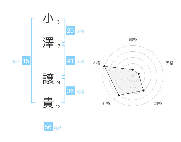 小澤 譲貴さんを姓名の画数から五運を鑑定