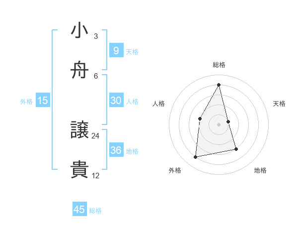 小舟 譲貴さんの総格は45画の4点!