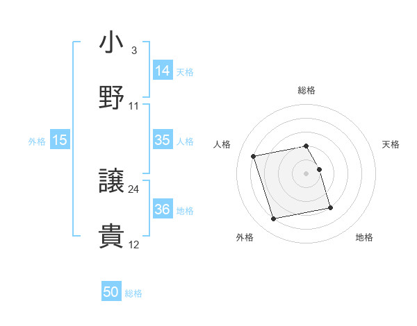 小野 譲貴さんの総格は50画の2点!