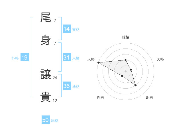 尾身 譲貴さんの総格は50画の2点!