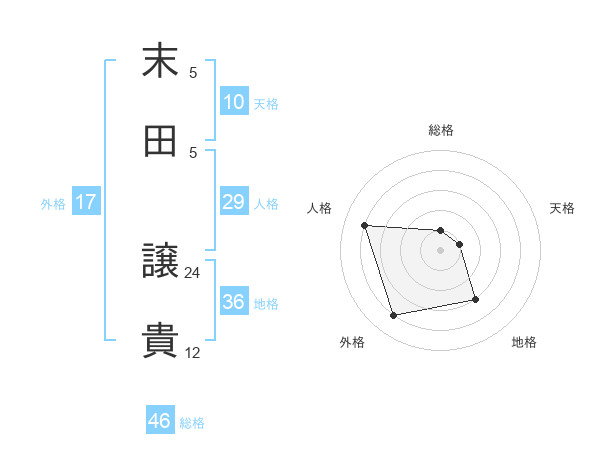 末田 譲貴さんを姓名の画数から五運を鑑定