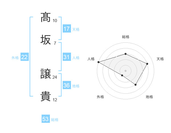 髙坂 譲貴さんを姓名の画数から五運を鑑定