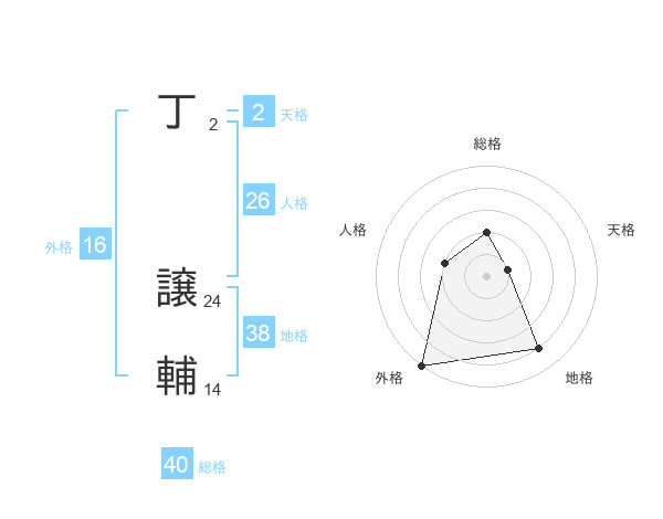 丁 譲輔さんの総格は40画の2点!