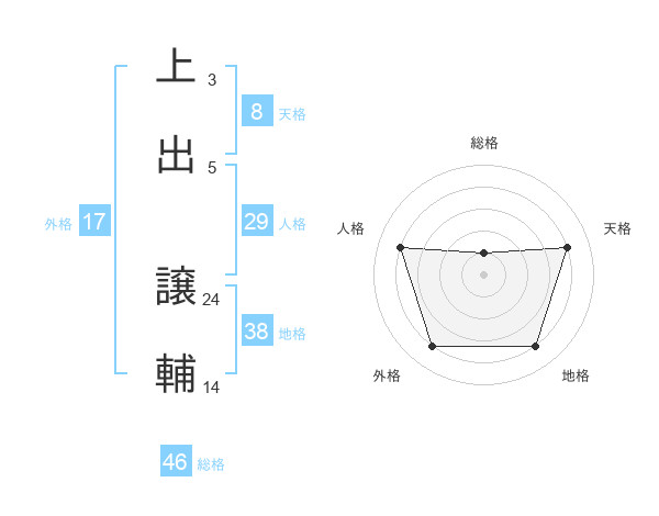 上出 譲輔さんの総格は46画の1点!
