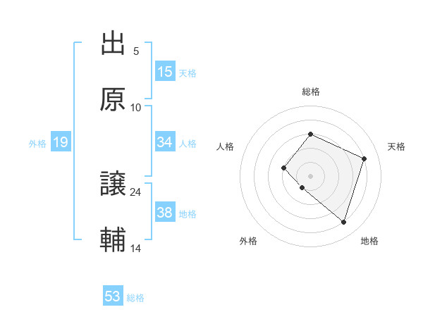 出原 譲輔さんの総格は53画の3点!