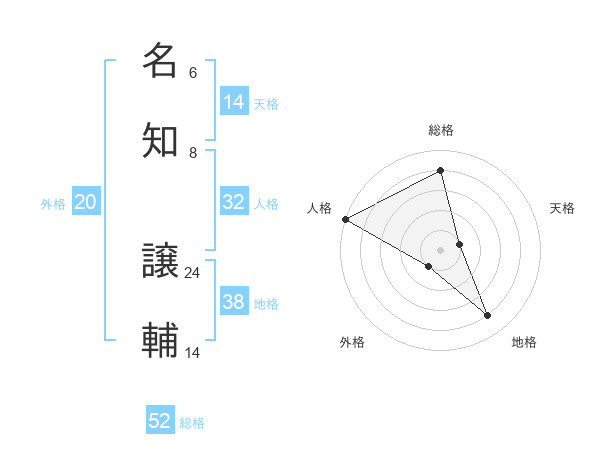 名知 譲輔さんの総格は52画の4点!