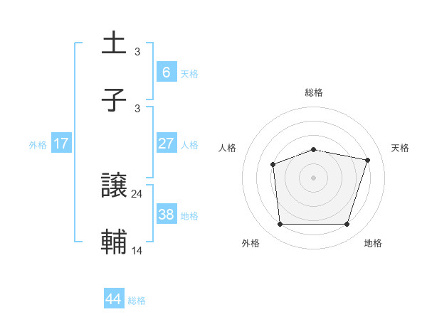 土子 譲輔さんの総格は44画の2点!