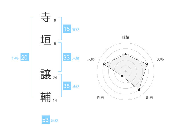 寺垣 譲輔さんの総格は53画の3点!