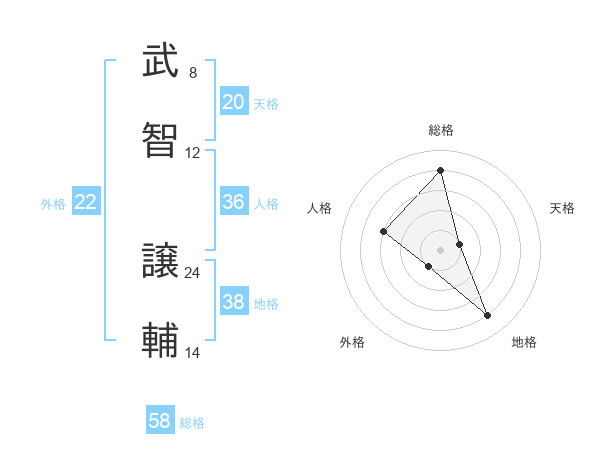 武智 譲輔さんの総格は58画の4点!