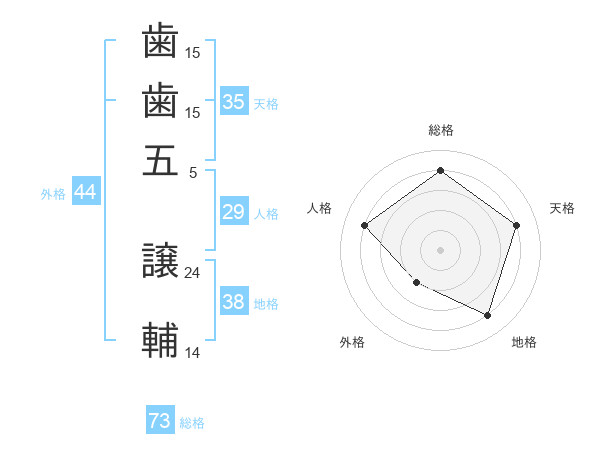 歯歯五 譲輔さんを姓名の画数から五運を鑑定