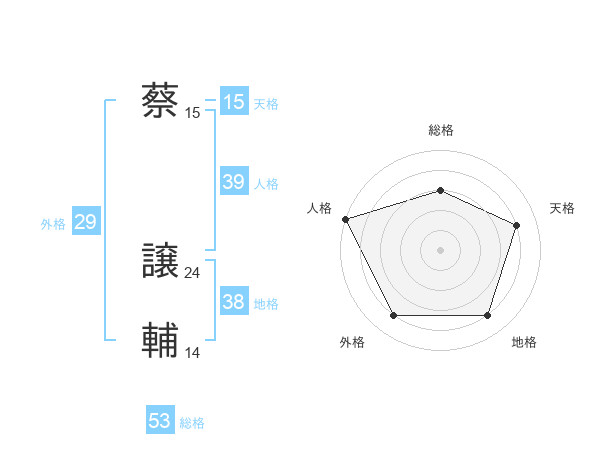 蔡 譲輔さんの総格は53画の3点!