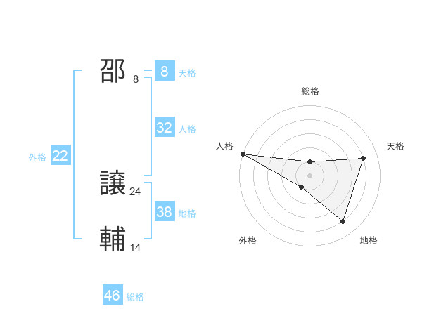 邵 譲輔さんの外格は22画の1点!