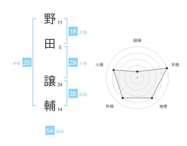 野田 譲輔さんを姓名の画数から五運を鑑定