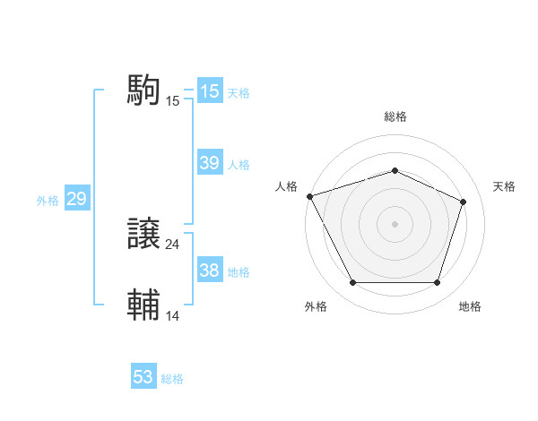 駒 譲輔さんの総格は53画の3点!