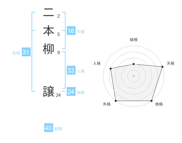 二本柳 譲さんの地格は24画の5点!