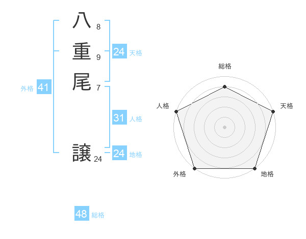 八重尾 譲さんを姓名の画数から五運を鑑定