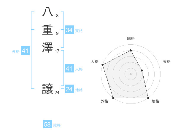 八重澤 譲さんの外格は41画の5点!