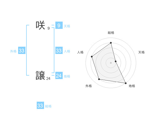 咲 譲さんの総格は33画の4点!