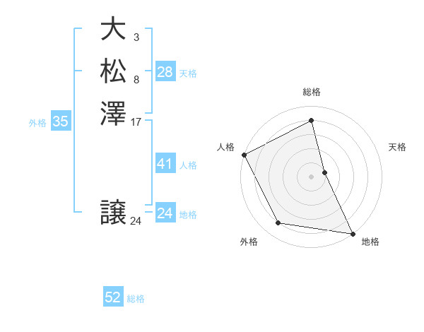 大松澤 譲さんを姓名の画数から五運を鑑定