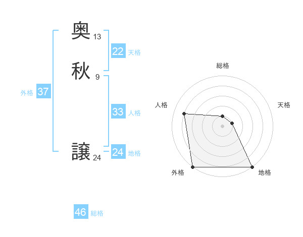 奥秋 譲さんを姓名の画数から五運を鑑定