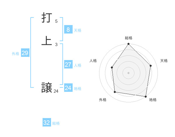 打上 譲さんの総格は32画の5点!
