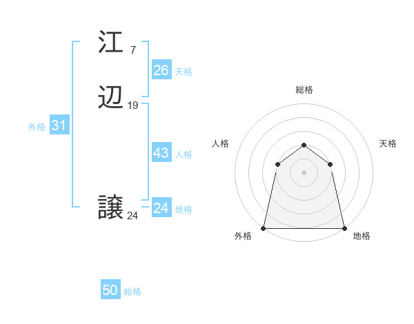 江辺 譲さんの総格は50画の2点!