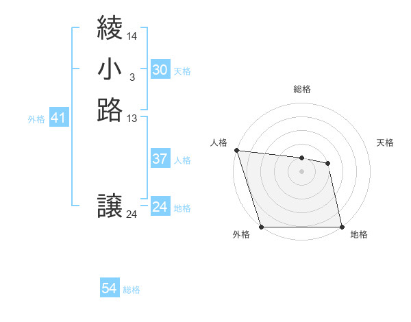 綾小路 譲さんの総格は54画の1点!