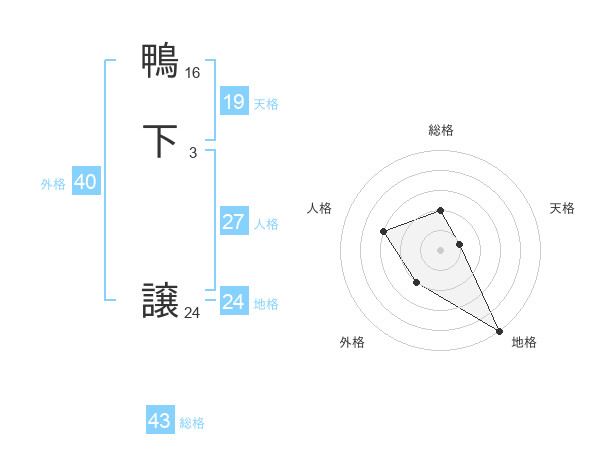 鴨下 譲さんを姓名の画数から五運を鑑定